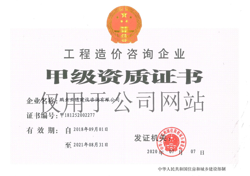 工程造價咨詢甲級資質證書